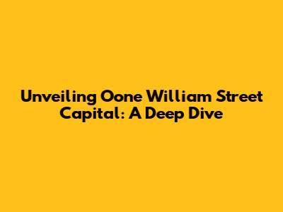 Unveiling Oone William Street Capital: A Deep Dive