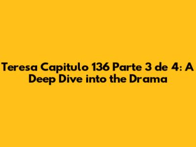 Hey guys! Let's dive into Teresa Capitulo 136 Parte 3 de 4. This part is absolutely packed with drama, intrigue, and those classic Teresa moments that keep us all hooked. For those of you who are die-hard fans, you know exactly what I'm talking about. If you're new to the series or just catching up, buckle up because this episode is a rollercoaster.