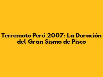 La Verdadera Duración del Terremoto de Pisco 2007