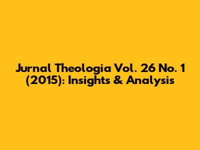 Jurnal Theologia Vol. 26 No. 1 (2015): Insights & Analysis