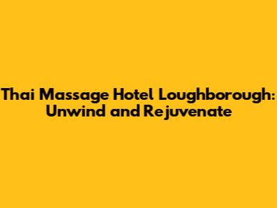 Hey guys! Looking to escape the everyday hustle and treat yourself to some well-deserved pampering? If you're in or around Loughborough, you're in luck! Combining the relaxing experience of a hotel stay with the therapeutic benefits of a traditional Thai massage is a fantastic way to recharge your batteries. This guide dives into the world of Thai massage hotels in Loughborough, helping you discover the perfect sanctuary for relaxation and rejuvenation. Let's explore why a Thai massage at a hotel is such a great idea, what to look for when choosing a place, and highlight some of the potential benefits you can experience.