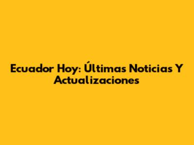 Ecuador Hoy: Últimas Noticias Y Actualizaciones