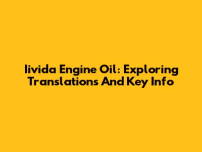 Iivida Engine Oil: Exploring Translations And Key Info