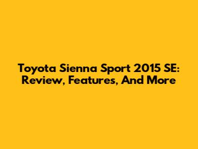 Toyota Sienna Sport 2015 SE: Review, Features, And More