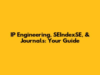 IP Engineering, SEIndexSE, & Journals: Your Guide