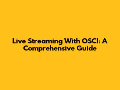Live Streaming With OSCI: A Comprehensive Guide