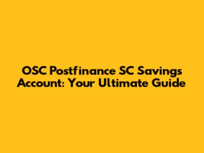 OSC Postfinance SC Savings Account: Your Ultimate Guide