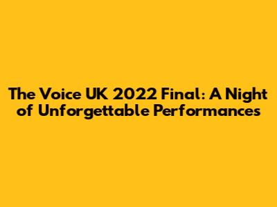 The Voice UK 2022 final was filled with memorable performances and moments that left a lasting impact. Each performance was unique. They were all incredibly moving. One of the memorable moments was when [mention a memorable moment from a specific performance]. The range of performances was incredible. The performances were very moving. The talent was exceptional. From start to finish, the show was amazing. It had a mix of energy, emotion, and incredible vocal performances. The show made for a truly unforgettable evening. The show highlighted the raw emotion and undeniable talent of the contestants. The talent was incredible, which made it a tough call for the audience to cast their votes. The night was a celebration of musical excellence. The atmosphere was palpable. The audience was visibly moved by the performances. The show provided a platform for some truly talented individuals to shine. It was a memorable evening.