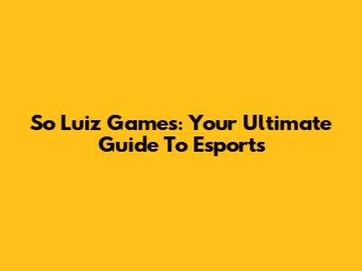 So Luiz Games: Your Ultimate Guide To Esports