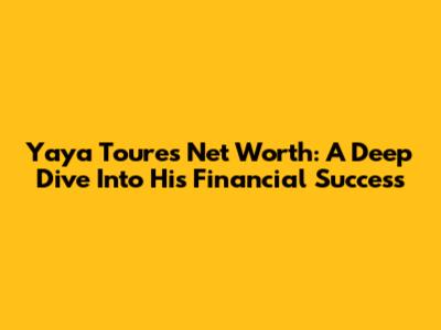 Yaya Toure's Net Worth: A Deep Dive Into His Financial Success