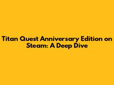 Hey guys! Let's dive deep into the legendary world of Titan Quest Anniversary Edition, now available on Steam. This action RPG, originally released in 2006, has been revamped and remastered to bring you an even more epic and immersive experience. If you're an old fan or new to the game, there's plenty to get excited about. Prepare yourself for a journey through ancient Greece, Egypt, and Asia, battling mythical monsters and unraveling a tale of gods and titans. Ready to become a hero? Let's get started!