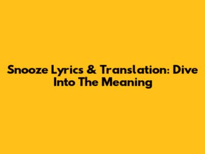 Snooze Lyrics & Translation: Dive Into The Meaning