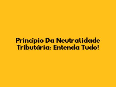 Princípio Da Neutralidade Tributária: Entenda Tudo!