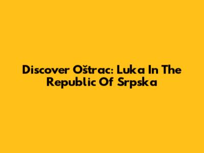 Discover Oštrac: Luka In The Republic Of Srpska