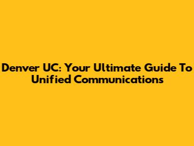 Denver UC: Your Ultimate Guide To Unified Communications