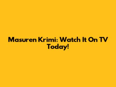 Masuren Krimi: Watch It On TV Today!