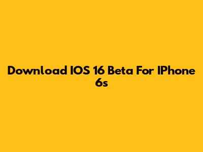 Download IOS 16 Beta For IPhone 6s