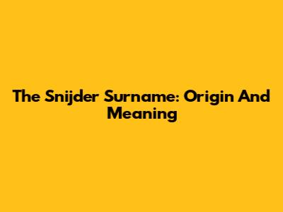 The Snijder Surname: Origin And Meaning