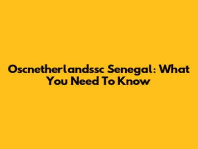 Oscnetherlandssc Senegal: What You Need To Know