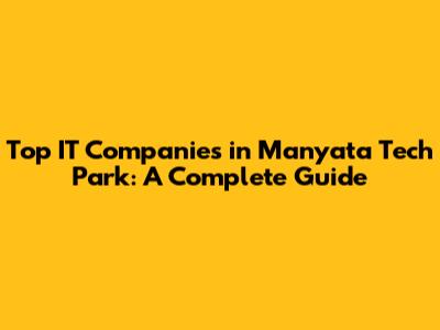 Manyata Tech Park, located in Bangalore, is one of India's largest technology parks. It houses numerous multinational corporations and IT giants, making it a significant hub for the IT industry. If you're looking to explore IT companies in Manyata Tech Park, whether for job opportunities, business collaborations, or simply to understand the tech landscape, this guide provides a comprehensive overview.