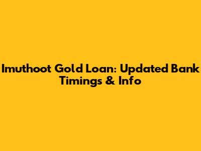Imuthoot Gold Loan: Updated Bank Timings & Info