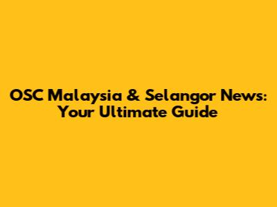 OSC Malaysia & Selangor News: Your Ultimate Guide