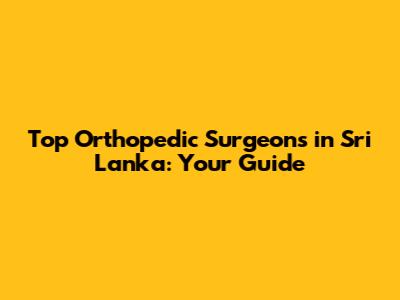Leading Orthopedic Surgeons in Sri Lanka: Top Picks