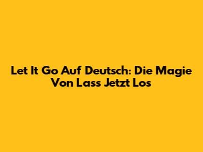 Let It Go Auf Deutsch: Die Magie Von "Lass Jetzt Los"