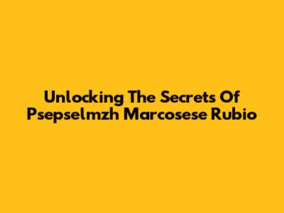Unlocking The Secrets Of Psepselmzh Marcosese Rubio