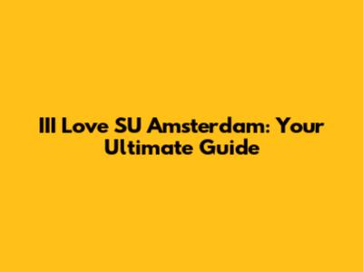 III Love SU Amsterdam: Your Ultimate Guide
