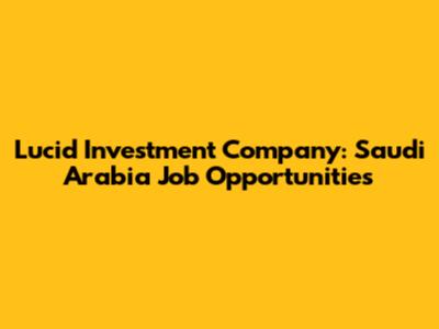 Lucid Investment Company: Saudi Arabia Job Opportunities