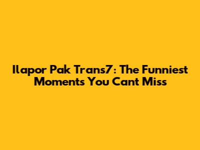 Ilapor Pak Trans7: The Funniest Moments You Can't Miss