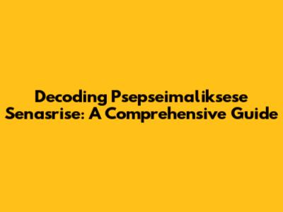 Decoding Psepseimaliksese Senasrise: A Comprehensive Guide