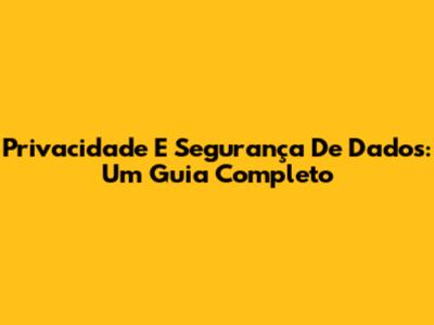 Privacidade E Segurança De Dados: Um Guia Completo
