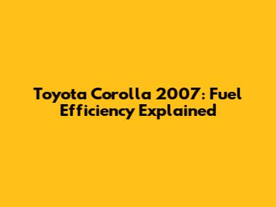 Understanding the Toyota Corolla 2007 Fuel Economy