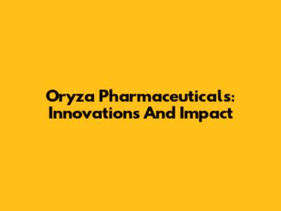Oryza Pharmaceuticals: Innovations And Impact