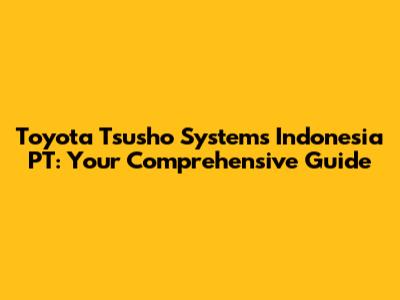 Hey guys! Ever heard of Toyota Tsusho Systems Indonesia PT and wondered what they're all about? Well, you've come to the right place! This guide dives deep into everything you need to know about this key player in Indonesia's tech scene. We're talking history, services, impact, and more. So, buckle up and let’s get started!