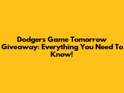 Dodgers Game Tomorrow Giveaway: Everything You Need To Know!