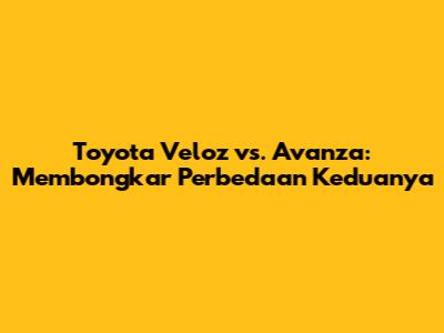 Ringkasan Perbedaan: Jadi, perbedaan utama antara Toyota Veloz dan Avanza terletak pada desain, fitur, performa, dan harga. Veloz menawarkan desain yang lebih modern dan sporty, fitur yang lebih lengkap, dan performa yang lebih baik. Avanza menawarkan desain yang lebih konservatif, harga yang lebih terjangkau, dan kenyamanan yang lebih baik. Pilihlah mobil yang paling sesuai dengan kebutuhan, preferensi, dan budget kalian.