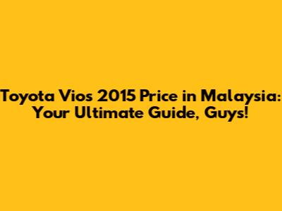 What's up, car enthusiasts and bargain hunters! If you're on the hunt for a reliable and affordable sedan in Malaysia, you've probably stumbled upon the Toyota Vios 2015. This model year was a real hit, offering that signature Toyota dependability at a price point that makes sense for a lot of folks. Today, we're diving deep into the Toyota Vios 2015 price in Malaysia, exploring what you can expect to pay, the factors that influence it, and why this car remains a popular choice in the pre-owned market. So grab your coffee, sit back, and let's get this bread!