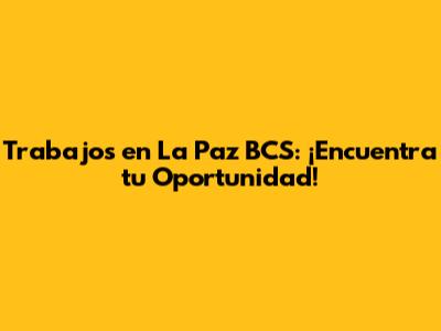 Finding job opportunities in La Paz, BCS, can be an exciting adventure. With its thriving economy, beautiful scenery, and welcoming community, La Paz is a great place to live and work. By understanding the local job market, targeting key industries, following our job search tips, and utilizing valuable resources, you can increase your chances of landing your dream job. So, start your job search today and get ready to embark on a rewarding career in La Paz! Remember to stay persistent, network with professionals, and tailor your resume and cover letter to each job. With dedication and effort, you'll find the perfect opportunity to thrive in this vibrant city. Good luck, and welcome to La Paz!