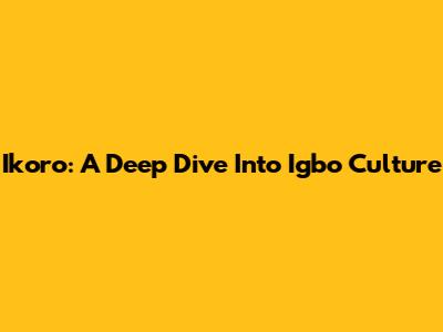 Ikoro: A Deep Dive Into Igbo Culture
