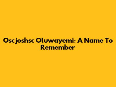 Oscjoshsc Oluwayemi: A Name To Remember