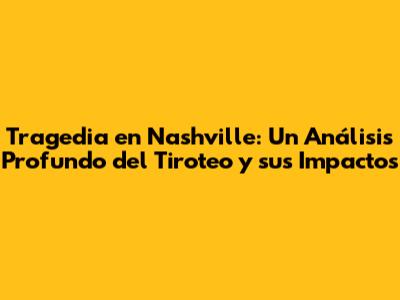 El tiroteo en Nashville que sacudió a la comunidad ha dejado una profunda huella. Este artículo busca analizar en detalle los eventos trágicos, explorando las circunstancias que rodearon el ataque, las víctimas, las posibles motivaciones y las repercusiones a largo plazo. Desde el momento inicial del tiroteo hasta las consecuencias que se extienden en el tiempo, examinaremos cada aspecto para ofrecer una comprensión completa de esta tragedia.