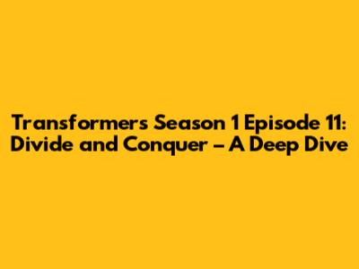 Hey Transformers fans! Let's dive into Transformers Season 1, Episode 11, titled 'Divide and Conquer.' This episode is a classic example of the Decepticons' cunning and the Autobots' resilience. Get ready for a detailed recap and some thoughts on why this episode remains a memorable part of the original series.