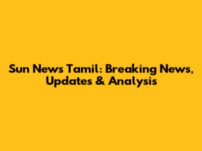Sun News Tamil: Breaking News, Updates & Analysis