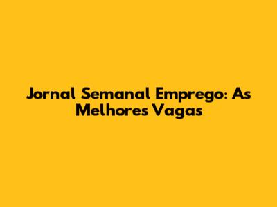 Jornal Semanal Emprego: As Melhores Vagas