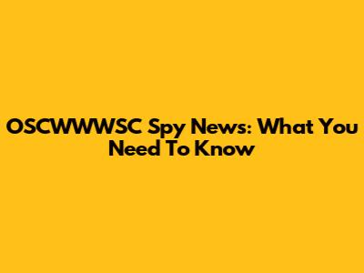 OSCWWWSC Spy News: What You Need To Know