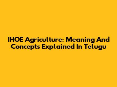 IHOE Agriculture: Meaning And Concepts Explained In Telugu