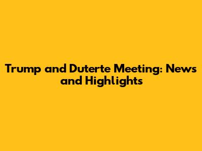 Trump And Duterte Meeting: News And Highlights